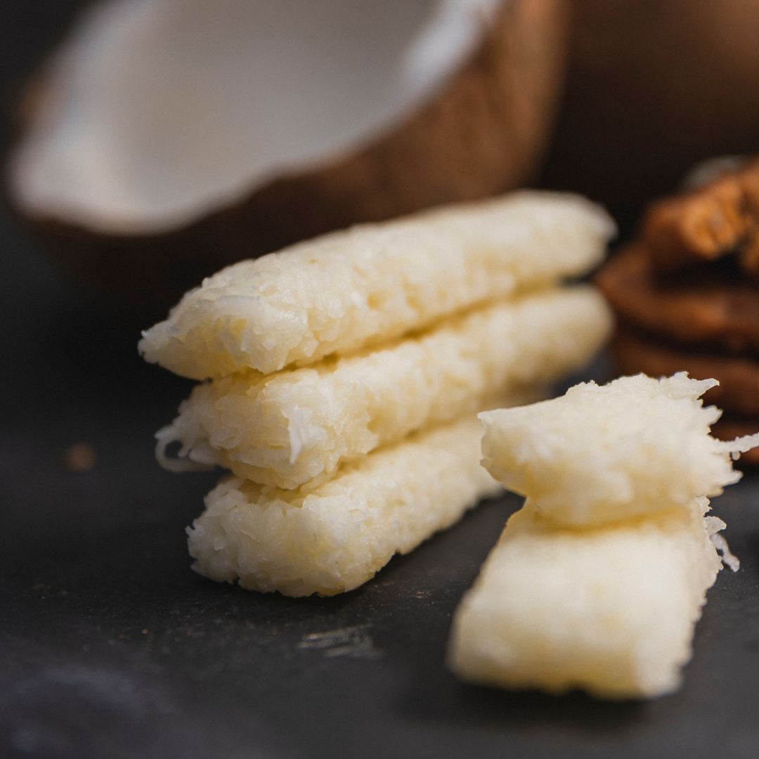 Coco rallado 100 gr Azúcar 90gr Claras 40 gr Compota de manzana 10 gr Mezcla todos los ingredientes y pon al baño María a 50 grados unos 10 minutos hasta que todo esté bien ligado Haz bolitas y ponlas sobre …